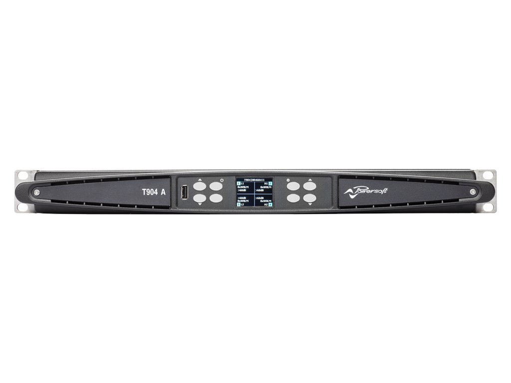 Powersoft T904 – 4kanálový zesilovač třídy D s DSP, 4×3000 W/4 Ω, TruePower ochrany, řízení přes ArmoníaPlus.